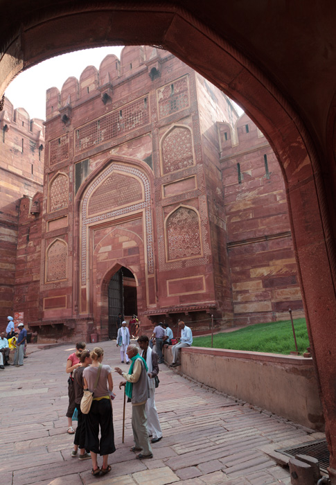 Czerwony fort - ośrodek władzy państwa Wielkich Mogołów od czasów Akbara, wybudowany w północno-wschodniej części Agry. Rozpoczęta w 1565 budowa trwała 8 lat. Masywne, zwieńczone blankami podwójne mury z czerwonego piaskowca wznosiły się na wysokość ponad 20 m i miały obwód około 2,5 km. Całość otoczona była fosą. Droga do Czerwonego Fortu prowadziła przez monumentalną bramę Amar Singh. Służyła też jako miejsce kaźni; za czasów Akbara zrzucano z niej skazanych na śmierć dostojników.