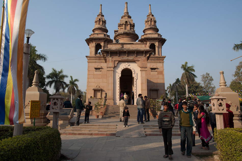 Na koniec zajrzeliśmy do świątyni Mulagandhakuti Vihara. Kolejna z wielu znajdujących się świątyń buddyjskich i chyba najbardziej znana. Została zbudowana w 1931 roku i mieści relikwie Buddy znalezione w Taxila. Ściany tej świątyni mają piękne freski przedstawiające życie Buddy. Zostały wykonane pomiędzy 1932 a 1935 rokiem przez japońskiego artystę, Kosetu Nasu.